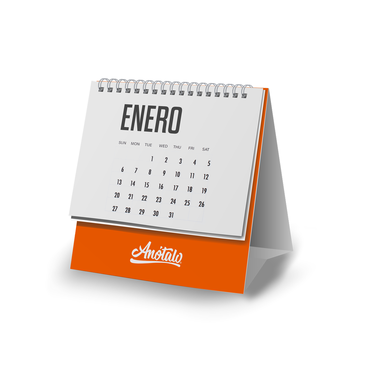 Con nuestro calendario de Peana personalizable, podrás mantener tu marca presente en la mente de tus clientes durante todo el año. Cada vez que consulten el calendario, verán tu logotipo y recordarán tus productos o servicios. Además, tendrás el práctico diseño genérico de Anótalo en las páginas interiores, cómodo y agradable al consultar cualquier fecha.