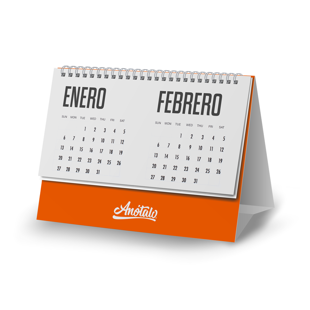 Con nuestro calendario de Peana personalizable, podrás mantener tu marca presente en la mente de tus clientes durante todo el año. Cada vez que consulten el calendario, verán tu logotipo y recordarán tus productos o servicios. Además, tendrás el práctico diseño genérico de Anótalo en las páginas interiores, cómodo y agradable al consultar cualquier fecha.